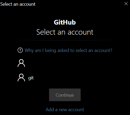 もし、利用時に以下のようなアカウント選択ダイアログが出た場合、git configでデフォルトのID名を指定することで解消可能です。